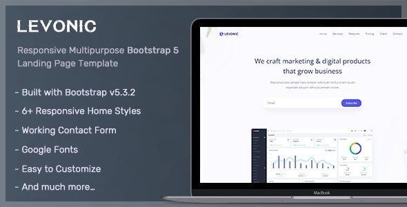 Levonic is a Startup Landing Page, Responsive quick and easy customizable Modern Startup Landing Page Template that comes with 6 home page variations. It’s fully responsive and