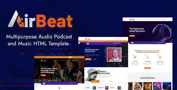 AirBeat is a modern Audio Podcast and Music based HTML template with 9 demo versions. It is perfect choice for artists, Musician, Events, Club Band, podcast or anyone who works in