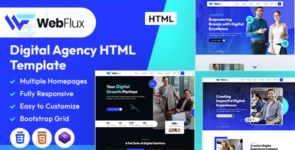 Elevate your digital projects and embrace the future of web design with the WebFlux HTML Template. Expertly crafted to cater to technology startups, creative agencies, and